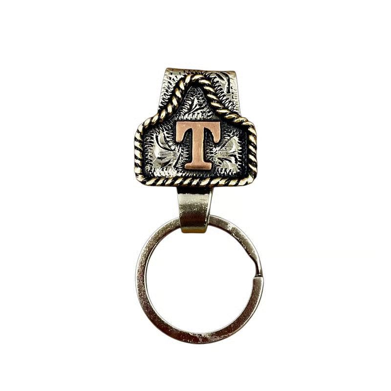 Handmade Cow Tag Belt Key Holder with Custom Initial