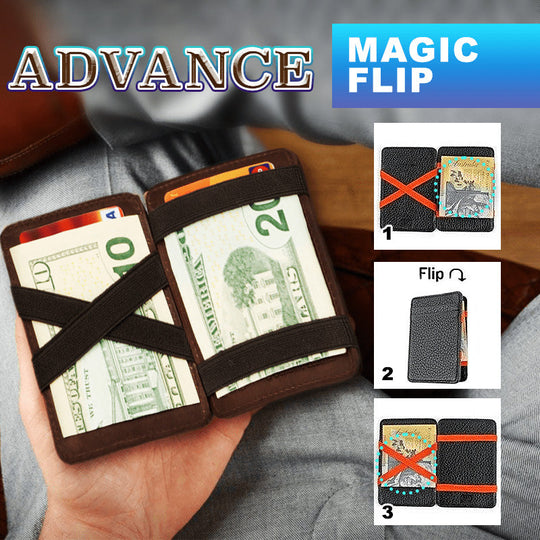 - Advance Magic Flip: This smart card holder offers a unique magic flap feature with no zippers to jam or clips to fool with. Simply lay your money on top of the elastic band, close it then flip and once you reopen, it already magically tucked your money behind the straps.