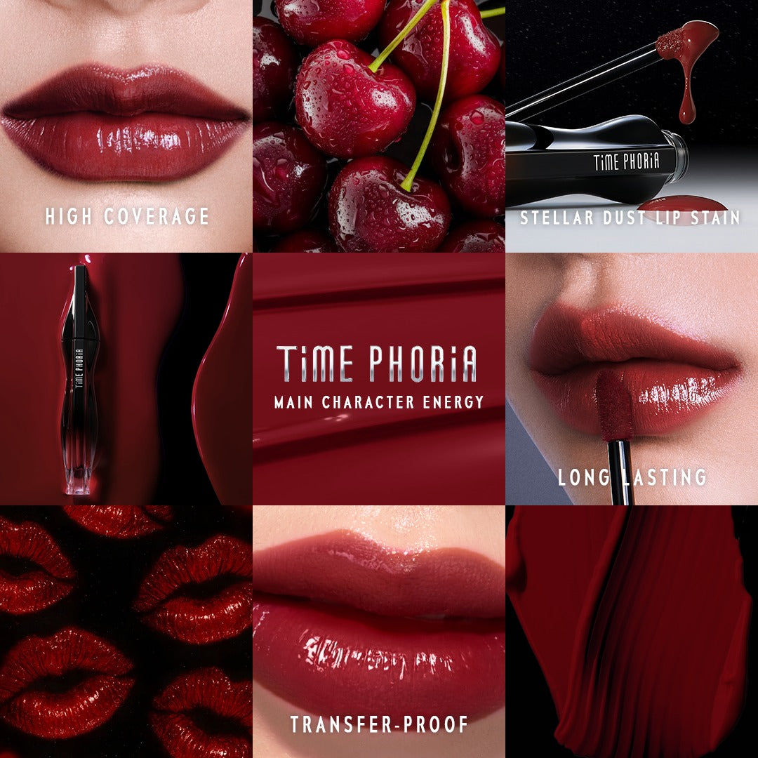 [Full Coverage & Vivid Color] TIME PHORIA stellar dust lip stain offers high full coverage intense color in one swipe, achieving a low-maintenance, long-wear look has never been easier.